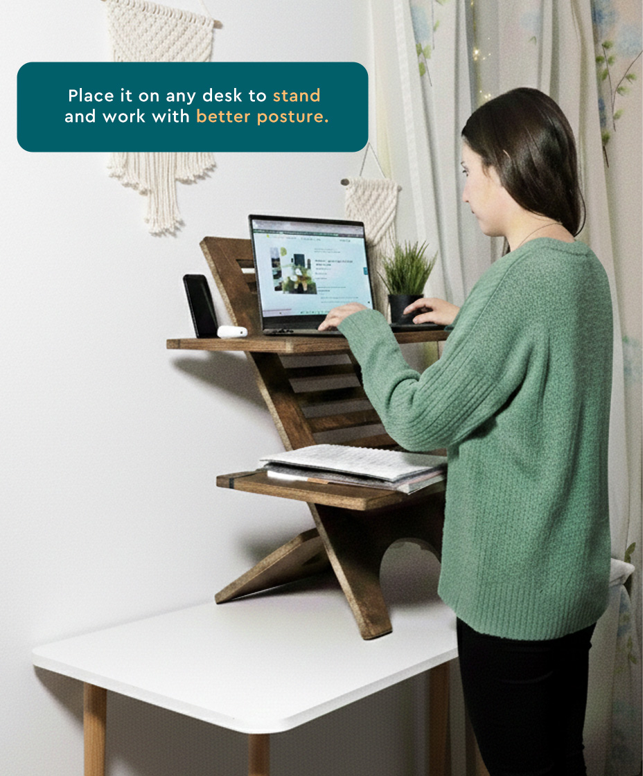 Made of strong plywood and built to support up to 16kg, this adjustable desk is designed to help you work comfortably — whether sitting or standing.